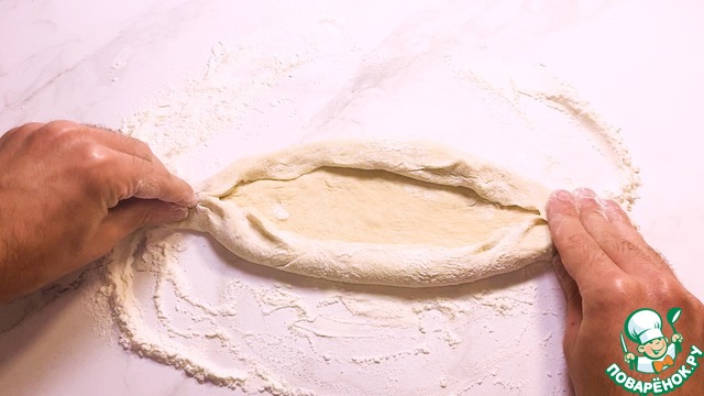 После чего тесто раскатываем при помощи скалки и формируем лодочку.