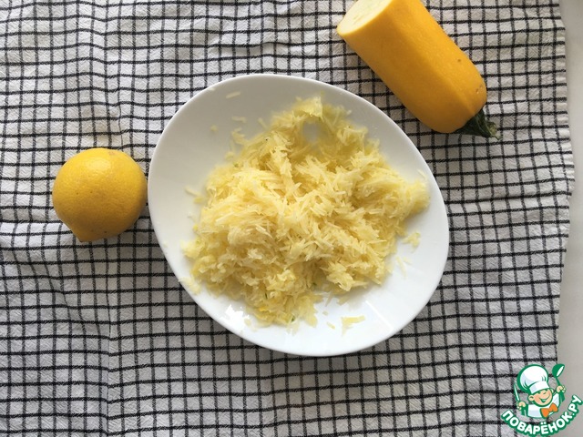 Кабачок натереть на мелкой терке, добавить маленькую щепотку соли и оставить на 5 минут.