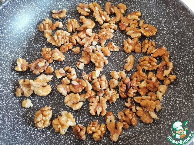 • Поджарить грецкие орехи на сухой сковороде.