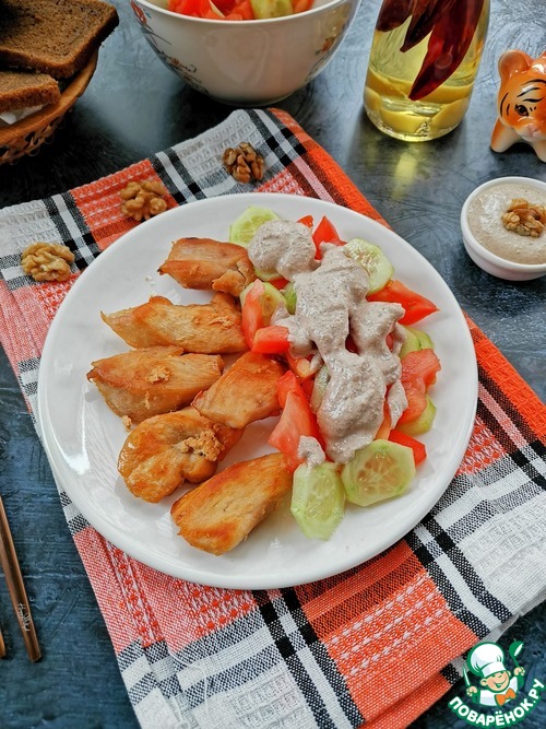 Насыщенный, ароматный, ядрёный ореховый соус. Прекрасно оттеняет и дополняет вкус тушёных и свежих овощей. Отлично подходит к птице. Неплохо гармонирует с бараниной и свининой. Угощайтесь!