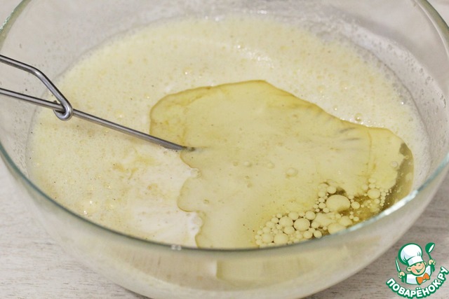 Отмерить муку, добавить к ней разрыхлитель, хорошо перемешать.