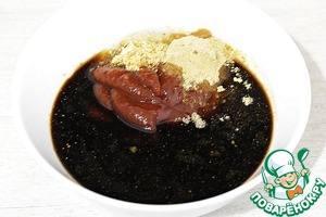 В небольшую миску выложить ингредиенты для глазури: кетчуп, соевый соус, табаско, сухие имбирь и чеснок, а также мед и табаско.