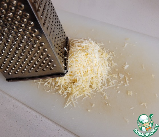 Натираем сыр. Мне нравится на мелкой тёрке, можно и на крупной.