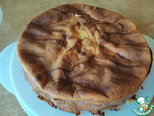 [+3]Вот только яблоки у меня при переворачивании отделились от "теста". И единого десерта не получилось. Пришлось сложить яблоки на запеканку и перевернуть назад чтобы , не портить вид запеканки.