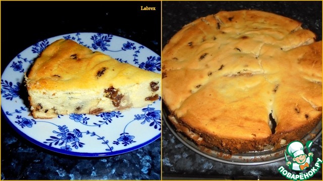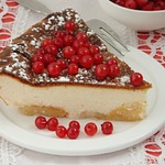 Это кусочек из круглой формы. Можно украсить сахарной пудрой и ягодками.