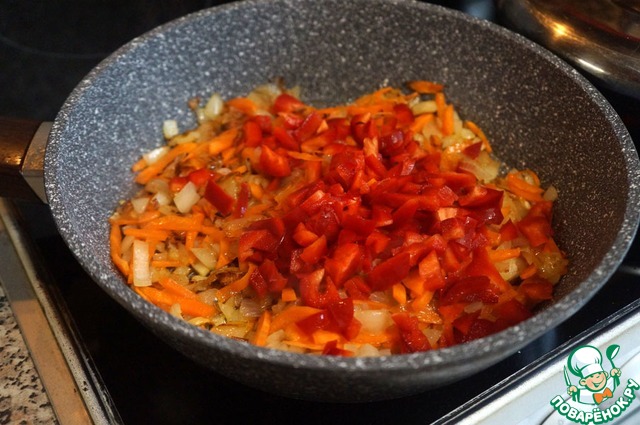 • Добавить перец, перемешать, тушить пару минут.