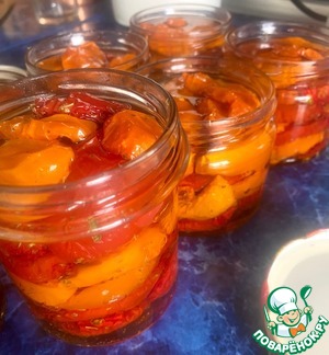 Отправляем баночки в разогретую до 160-180С духовку на 30 минут, показатель что их пора доставать: немного приподнятые крышки и может немного выйти через верх масло. -