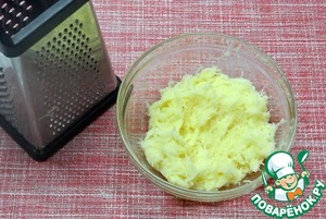 Картофель очистить, обсушить, натерерть на мелкой терке. Отжать.