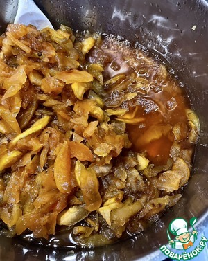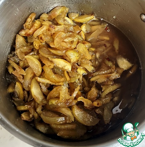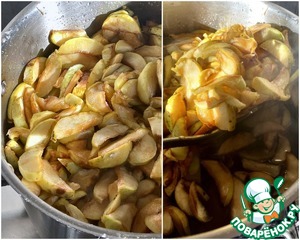 Прежде чем начинать варить варенье, дольки яблочные переворошили. Именно переворошили. Так, чтобы все дольки стали, как бы покрыты соком-сиропом. Типа глазировка такая произошла.