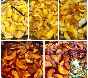 я сначала айву варю в небольшом количестве воды до мягкости, затем из этой воды делаю сироп и дальше варю как обычно. Если так не делать, айва жестковатая получается