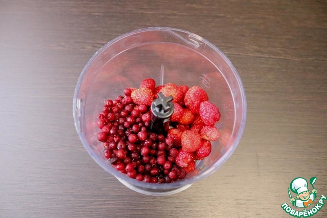 Чтобы избавиться от шкурок брусники (у неё она довольно жесткая), я пропускаю пюре через дуршлаг с небольшими дырками.