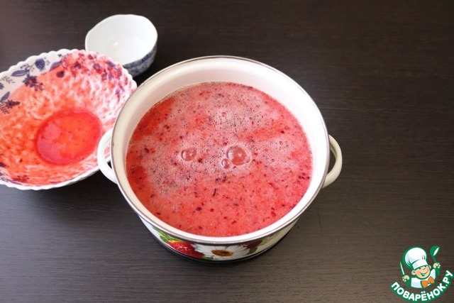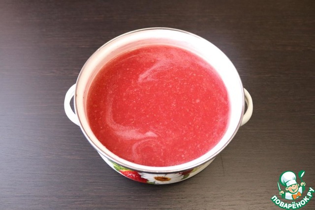 Я взяла 4 стакана воды + стакан ягодного пюре = 5 стаканов.