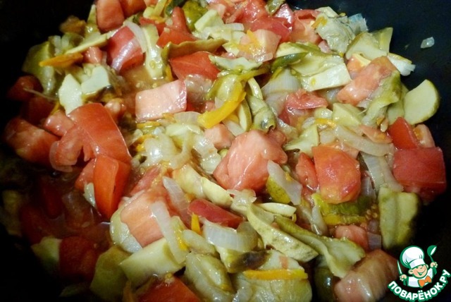 Рецепт «Белые грибы с помидорами и луком»: