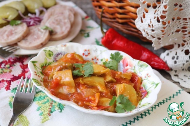 Белые грибы с помидорами и луком