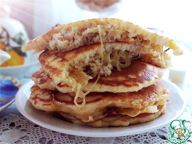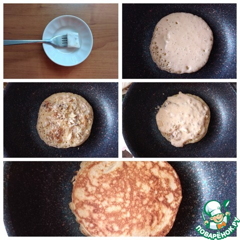 Рецепт «Коробочкины толстые дрожжевые блинцы с припёкой»: