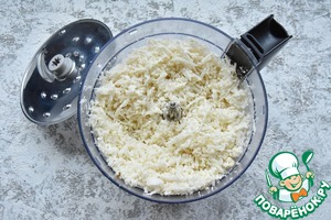 Шинкую цветную капусту с помощью кухонного комбайна.