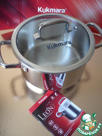 Овощной суп с копченой скумбрией я буду готовить при помощи замечательной посуды ТМ Kukmara. Вот в такой кастрюле объемом 3 литра, со стеклянной крышкой, для удобства на внутренней стенке корпуса нанесена мерная шкала для дозирования жидкости и ингредиентов, которая позволит соблюдать пропорции во время приготовления блюда.