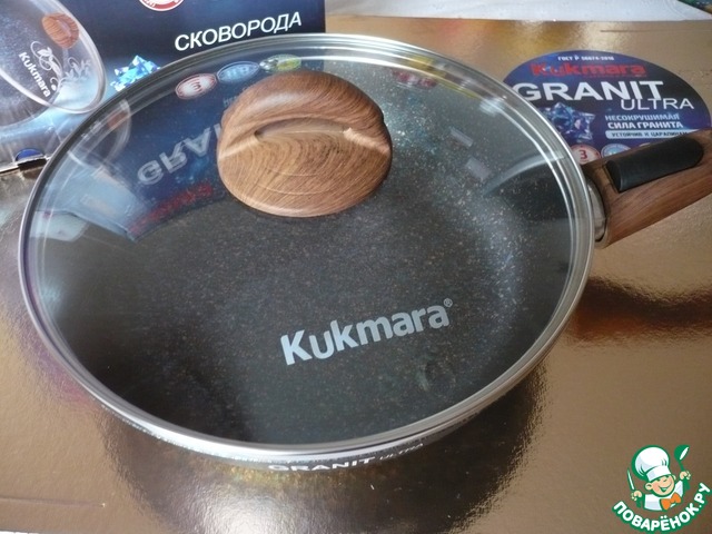 Тем временем пока варится картофель берем сковороду ТМ Kukmara. Сковорода Kukmara Granit Ultra диаметром 240 мм со съемной ручкой и стеклянной крышкой — одна из самых популярных классических сковородок бренда.