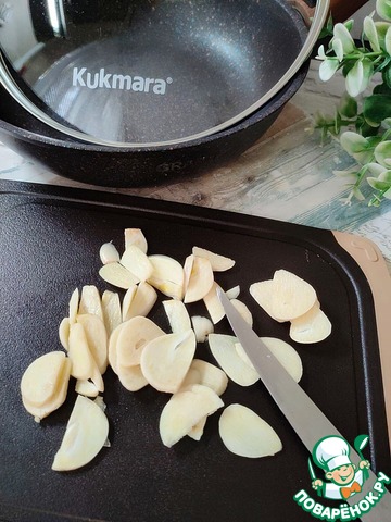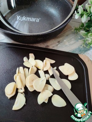 Чеснок освободите от шелухи. Нарежьте пластинами.