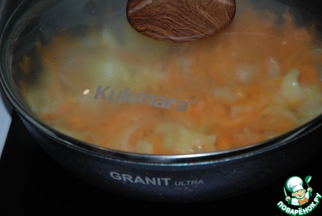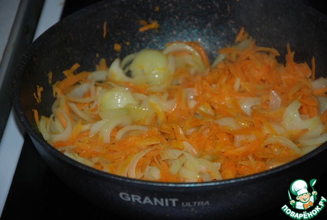Выложите на разогретую сковороду, смазанную растительным маслом, нарезанный полукольцами лук и натертую на крупной терке морковь, сливочное масло и обжарьте до прозрачности лука.