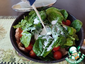 Добавить шпинат и сливки. Посолить.