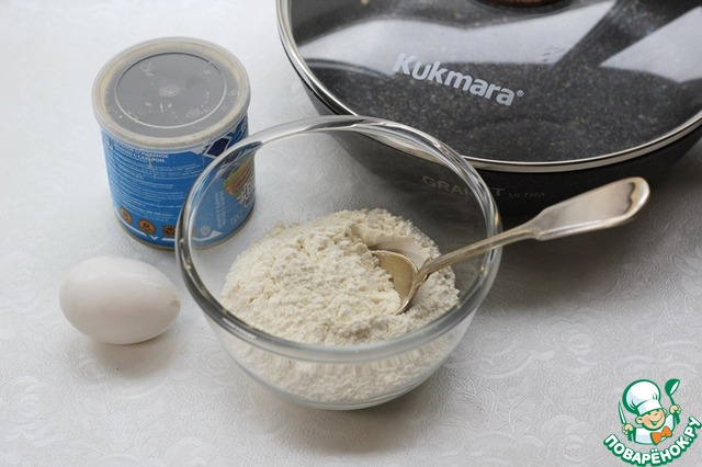 Приготовить муку, желток, сгущенное молоко и сковороду ТМ KUKMARA.