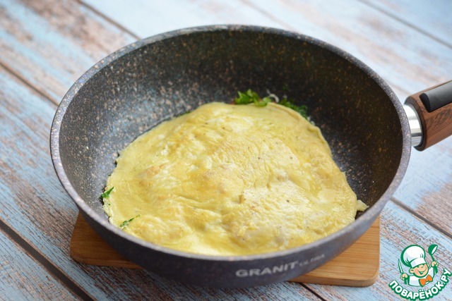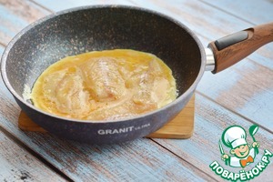На сковороде разогрейте немного растительного масла. Аккуратно вылейте яйцо с рыбным филе на сковороду.