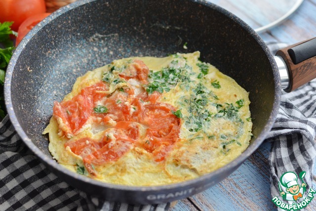 • Сверху выложите ломтики помидора и немного свежей зелени. Поджарьте бризоль с одной стороны до лёгкого золотистого цвета