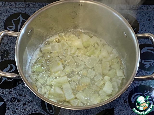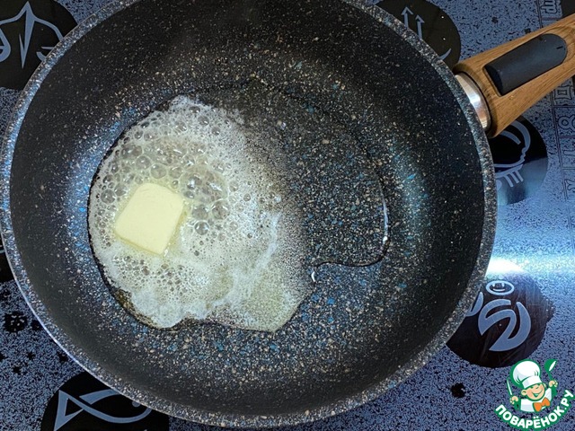 Пока варится суп, в сковороде ТМ Kukmara растопите 2 ст. л. растительного масла и оставшиеся 40 гр сливочного масла.