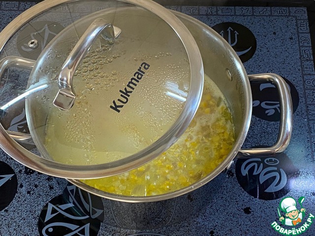Для приготовления кукурузного крем-супа подготовьте все необходимые ингредиенты.