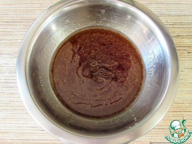 Для соуса смешать сироп агавы, 1 ст. л. растительного масла, уксус, соевый соус, имбирь и вино.