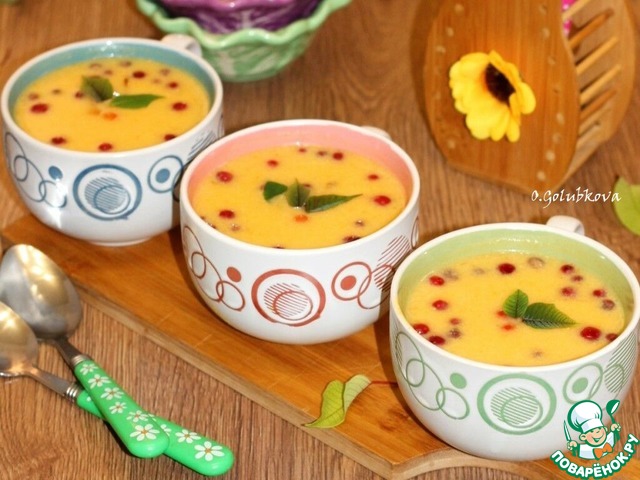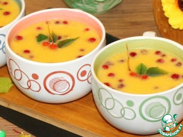 Рецепт «Тыквенный крем-суп с индейкой и брусникой»: