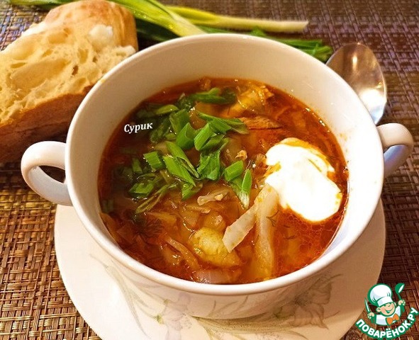 Наваристые щи из свежей капусты с добавлением других овощей и томатной пасты. Суп получается ярким, вкусным и ароматными. Бульон из курицы варится быстро, остается добавить капусту с картофелем и зажарку – и можно подавать щи к обеденному столу.