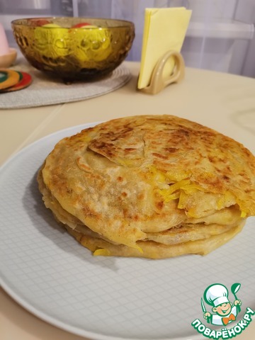 Катмер- это слоеная турецкая лепешка. Готовится из доступных ингредиентов, с дополнением в виде сыра или зелени. Я предлагаю свой вариант - с тыквой.