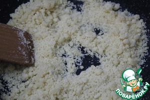 Разогреваем сковороду и частями - я поделила на 4 части, обжариваем на сухой сковороде на огне чуть меньше среднего, постоянно мешая.