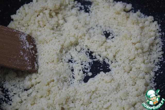 Вот такая крошка получается, если обжаривать на огне чуть выше среднего.