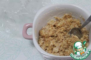 Крошку перемешать с кремом - масса плотная (я взвесила -на 140 гр крошки ушло 90 гр крема) -