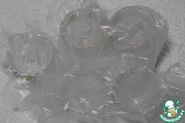 В качестве формы я использовала ликерные рюмки, выложив их внутри пленкой.
