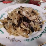 Капусту для блюда используем свежую, а вот грузди солёные. Если грибы сильно солёные, то обдайте их кипятком и дайте стечь на сите.