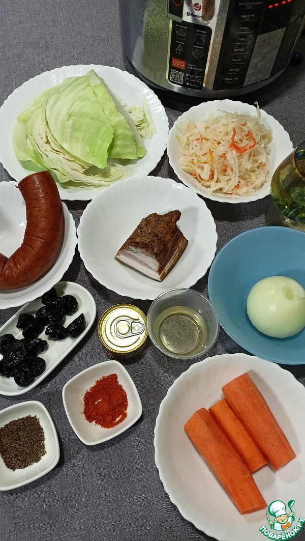 Рецепт для приготовления в МУЛЬТИВАРКЕ. Как известно, рецепты которые становятся известными, уходят в разные народы... и начинают стремительно обрастать вариантами. Этой участи не избежал и польский Бигос. Если изначально его рецепт был более менее точен - сейчас только основных вариантов десятки. Тут и Белорусский (без квашенной капусты), и Литовский (с яблоками), и Легкий (с куринным филе), и множество других. Сегодня мы будем готовить так называемый Разбойничий - в котором от 30 до 70% мясной части, сало.