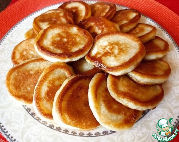 Предлагаю приготовить оладушки, которыми угощала Жакоба и Маргадона- Фимка, дворовая девушка Федяшевых, из музыкальной комедии Марка Захарова "Формула любви". По этому рецепту оладушки получаются пышные, нежирные и вкусные, за рецепт благодарю Оксану! Киноидея заимствована у Светланы Мисс, благодарю!
