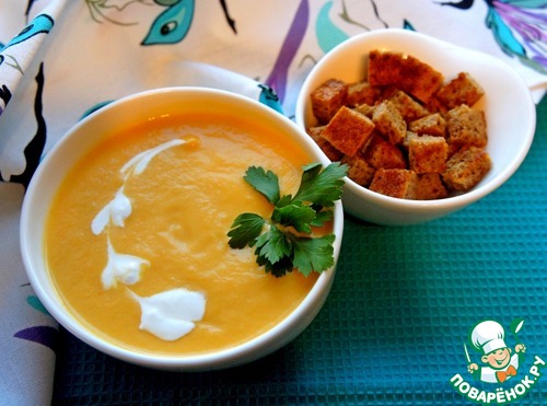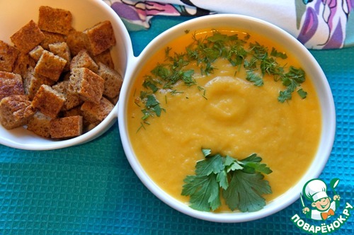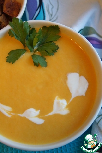 Долго решала, что же у меня получилось: суп-пюре, суп-крем, или даже, суп-велюте, настолько он нежный и бархатный. НЕТ. это, конечно, не велюте, технология приготовления другая, решила, что все таки это суп-крем.