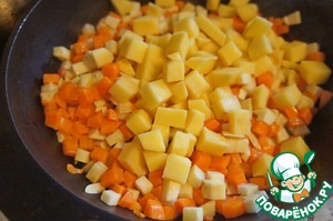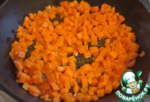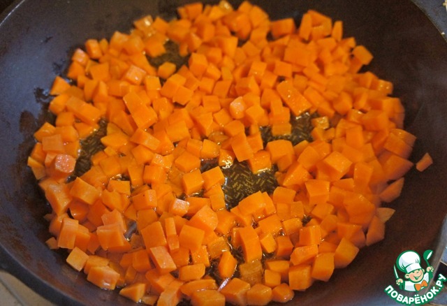В глубокой сковороде на растительном масле обжарить морковь 5 минут,