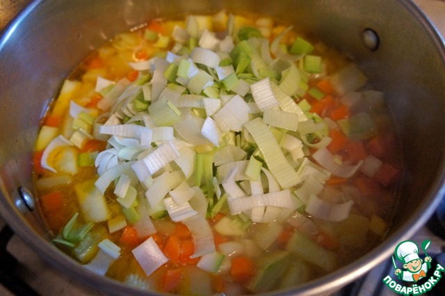 - Лук-порей (20 см, белая и светло-зелёная часть) — по вкусу