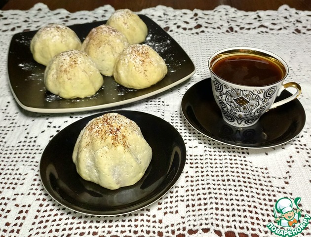 Теперь собираем наше печенье. На ладони формируем лепешку из темного теста и заворачиваем в нее кокосовый шарик. Далее также на ладони делаем лепешку из белого теста и в него заворачиваем темный шарик. Можно одновременно заворачивать в два теста (как на фото).