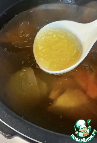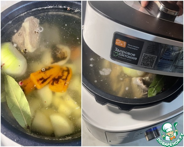 • А дальше применил мультиварку. Ну нет у меня здесь, в Северном Причерноморье русской печки в доме. Поэтому в режиме «томление», на среднем давлении и с закрытым клапаном бульон томился два с половиной часа.