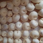Перекладываю пельмени на доску, припыленную мукой и замораживаю в морозильной камере.