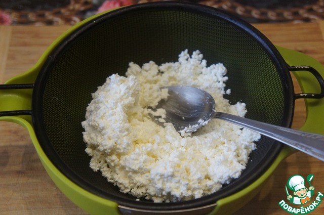 Творог тщательно протереть через мелкое сито.