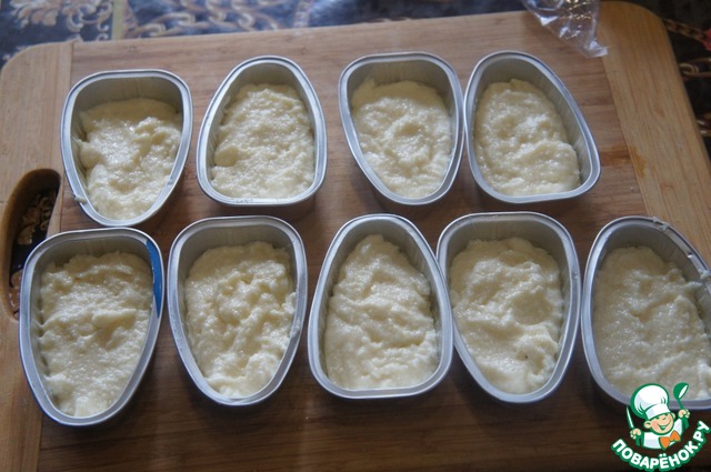 Духовку разогреть до 170 -180*. Готовое творожное тесто разложить по формочкам для выпечки.