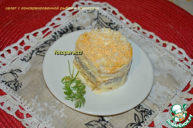 Салат чем-то похож на "Мимозу", но он с крекерами. Попробуйте, надеюсь понравится!